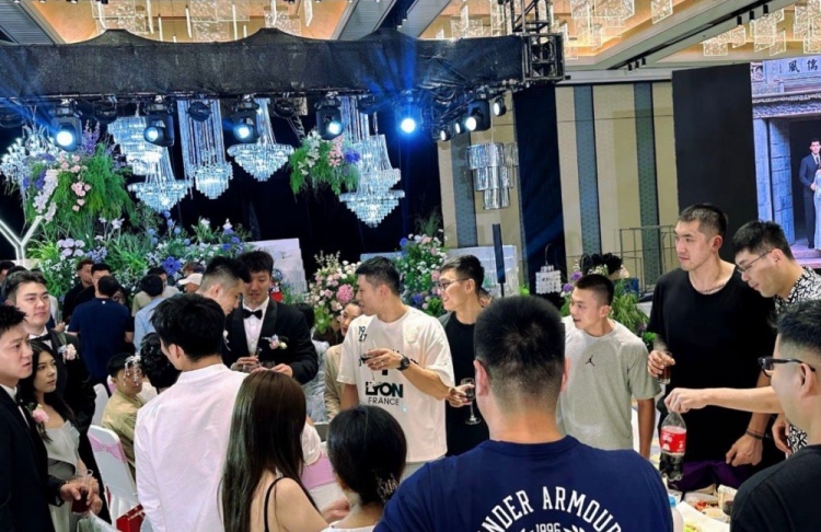 9月1日讯 山东男篮球赛 员郭凯昨日举办了婚礼,山东男篮全队和中国男篮主指导教练员郭士强到场祝贺。