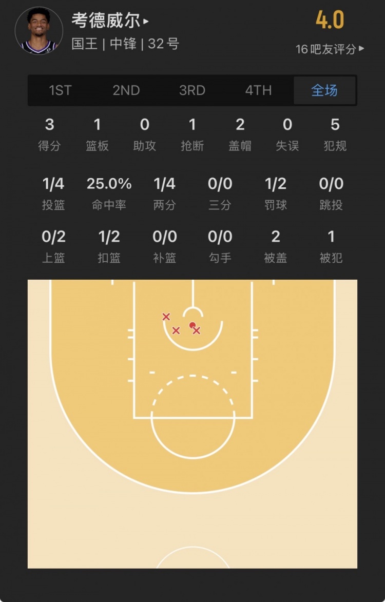 国王落球员选拔 迪伦-考德威尔 登场14.6分钟