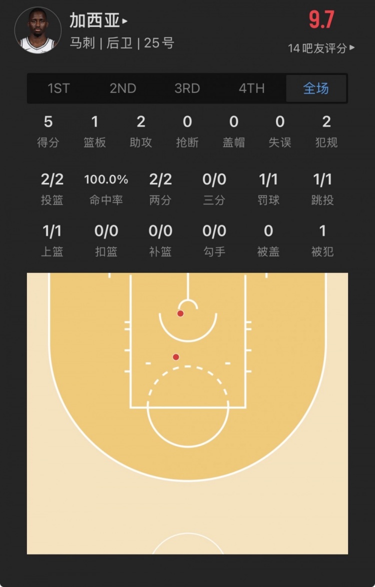 马刺落球员选拔 大卫-琼斯-加西亚 登场4.1分钟
