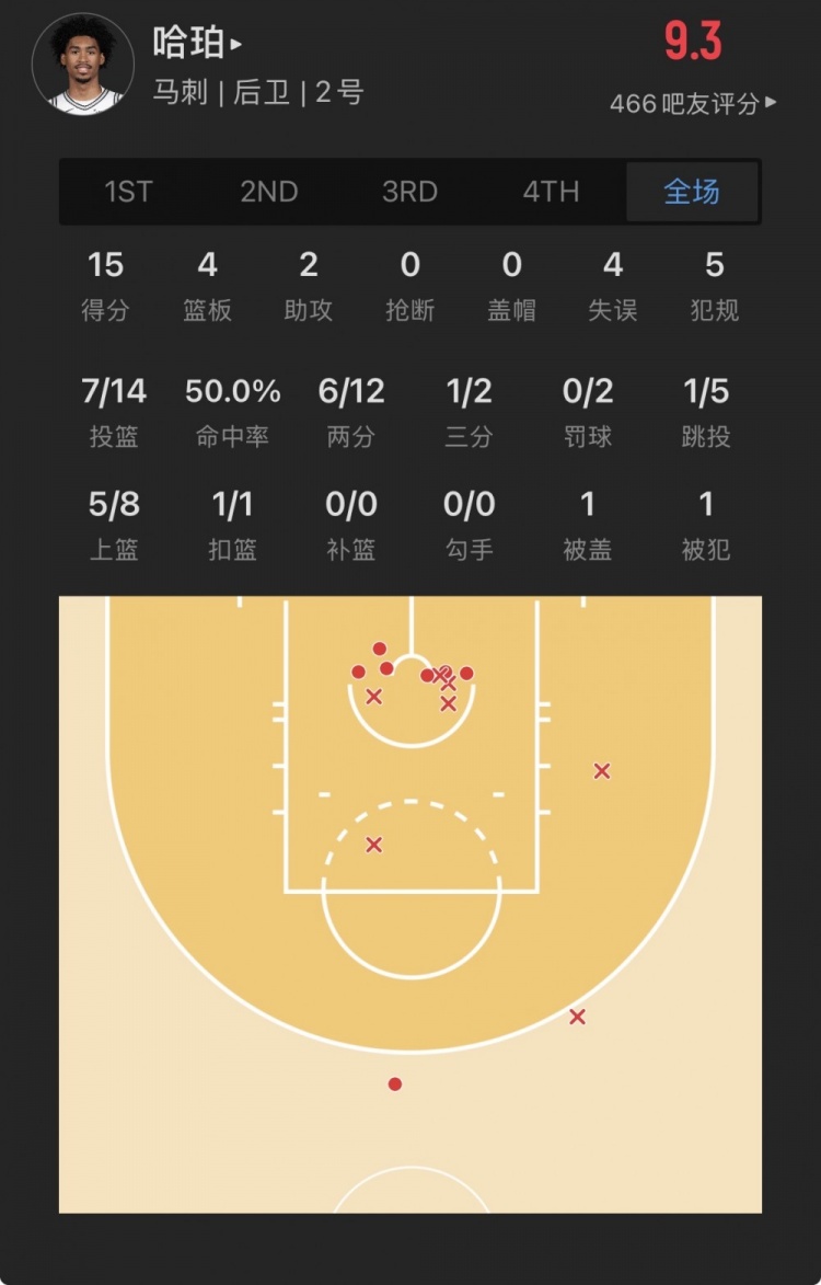 灰熊48号秀 贾冯-斯莫尔 登场19.3分钟