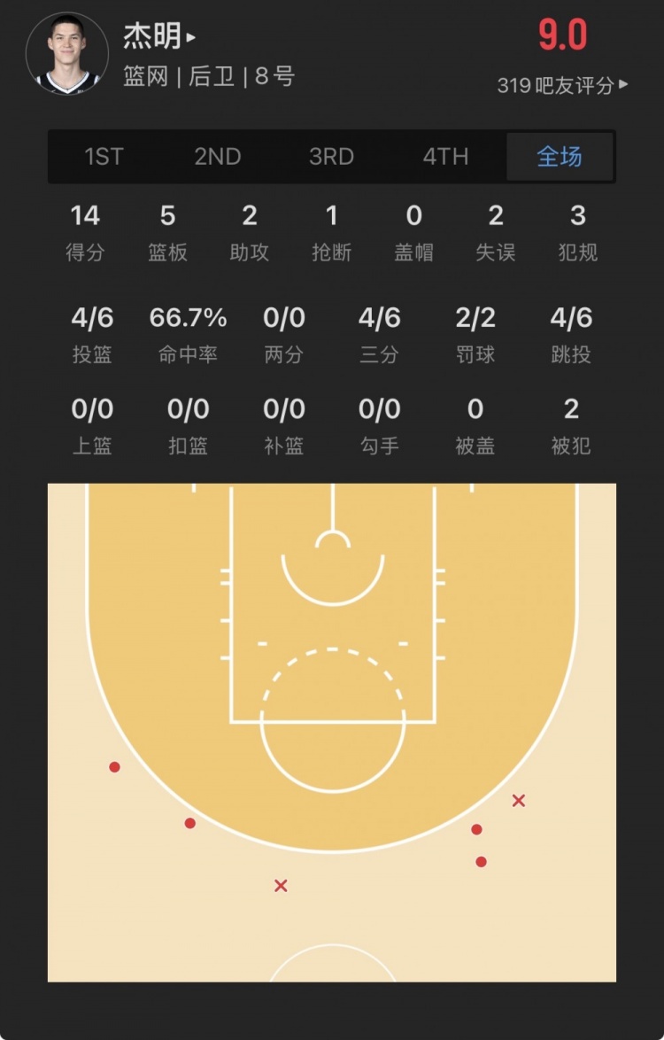 篮网8号秀 叶戈尔-杰明 登场22.3分钟