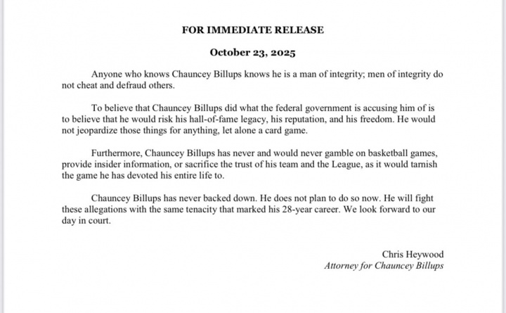此外,昌西-比卢普斯从未也绝不会加入 篮球赛 赌博、泄露内幕信息,或背弃球队与联盟的信任——这都将玷污他奉献终身的体育事业。