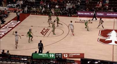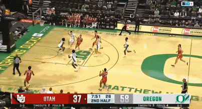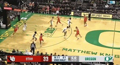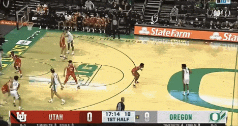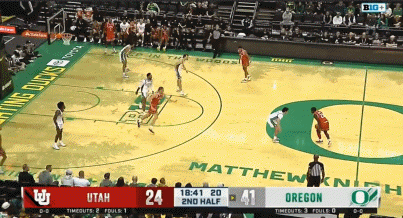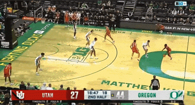 根据这三场录像和俄勒冈上赛季的赛事 录像,我们可以看出来,俄勒冈的策略 体系其实是相对比较老派的——阵地战给低位的比例非常高,会更多从侧翼和底角发起攻击 ,而且有大量围绕低位五号位的策略 。