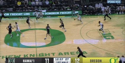 我之前的文章提到过,俄勒冈有大量的大四大五生,核心是五号位,指导教练员也是个老派指导教练员,所以打法循规蹈矩一点很正常