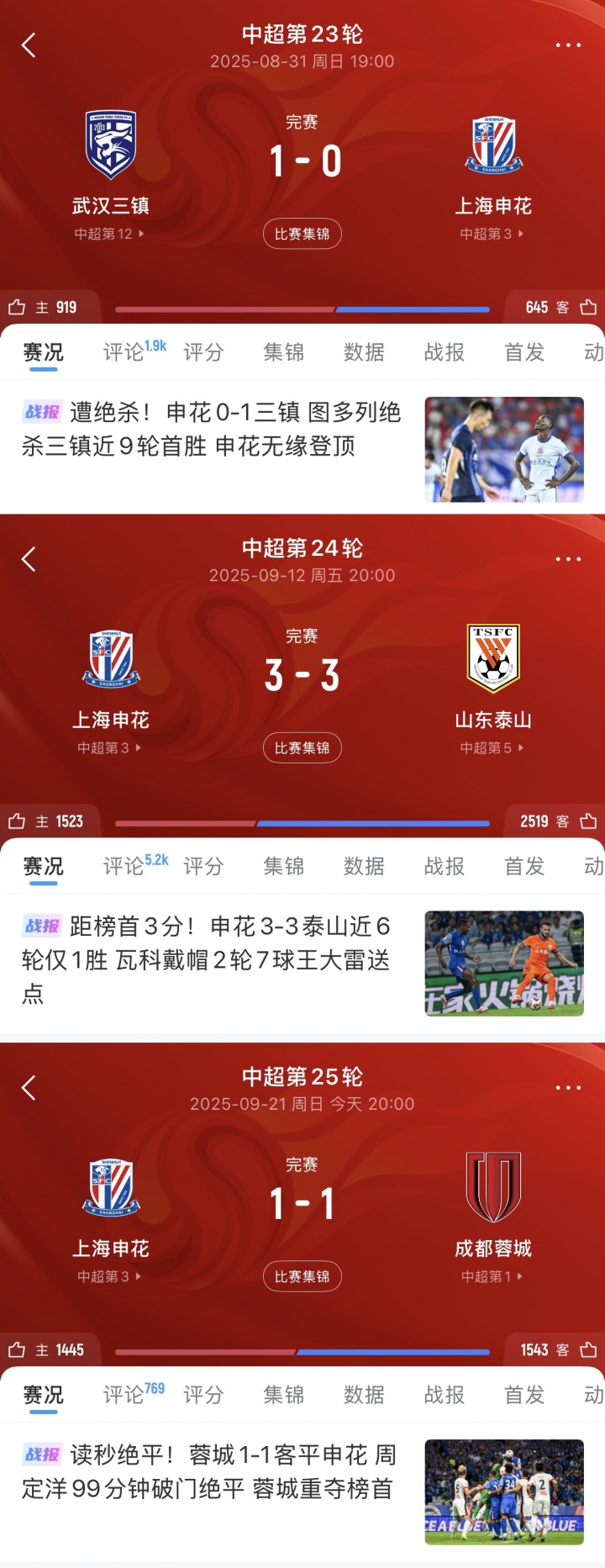 连续三轮最后时刻丢球!申花连场被绝平+被三镇致胜球 ,遭三轮不胜