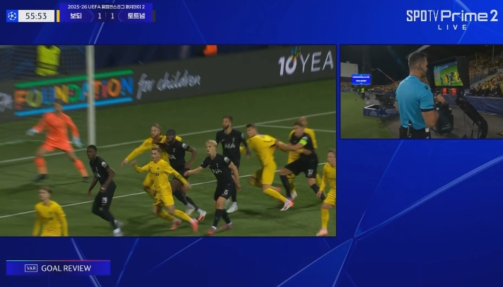 赛事 第54分钟,约翰逊本坦库尔闪电扳平,VAR介入判决 违例 在先,得分 无效。博德闪耀仍然1-0领跑 热刺!