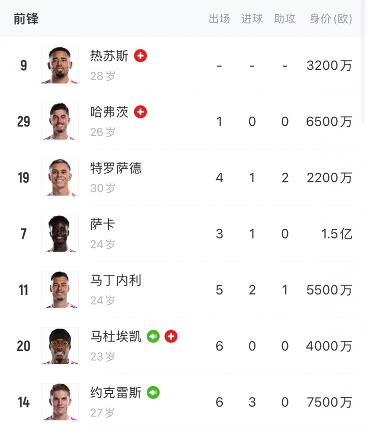 萨卡刚复出🤕枪手锋线再伤一人,棍哥休2月+哈弗茨热苏斯还没好