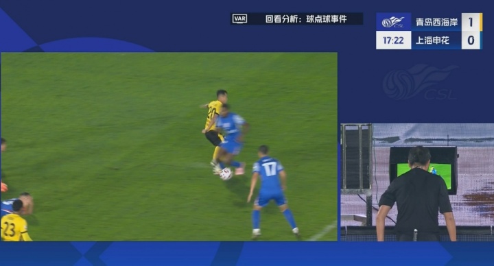 马纳法倒地,主裁看VAR判决 十二码球!吴曦点射命中,申花1-1西海岸