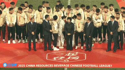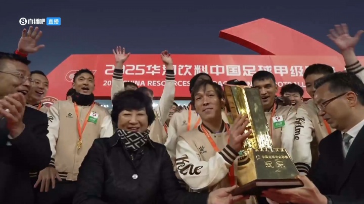 赛后举行颁奖典礼 ,24直播网辽宁铁人领队 邦本宜裕在主场作战 捧起2025赛季中甲职业联赛 第一名 奖杯!