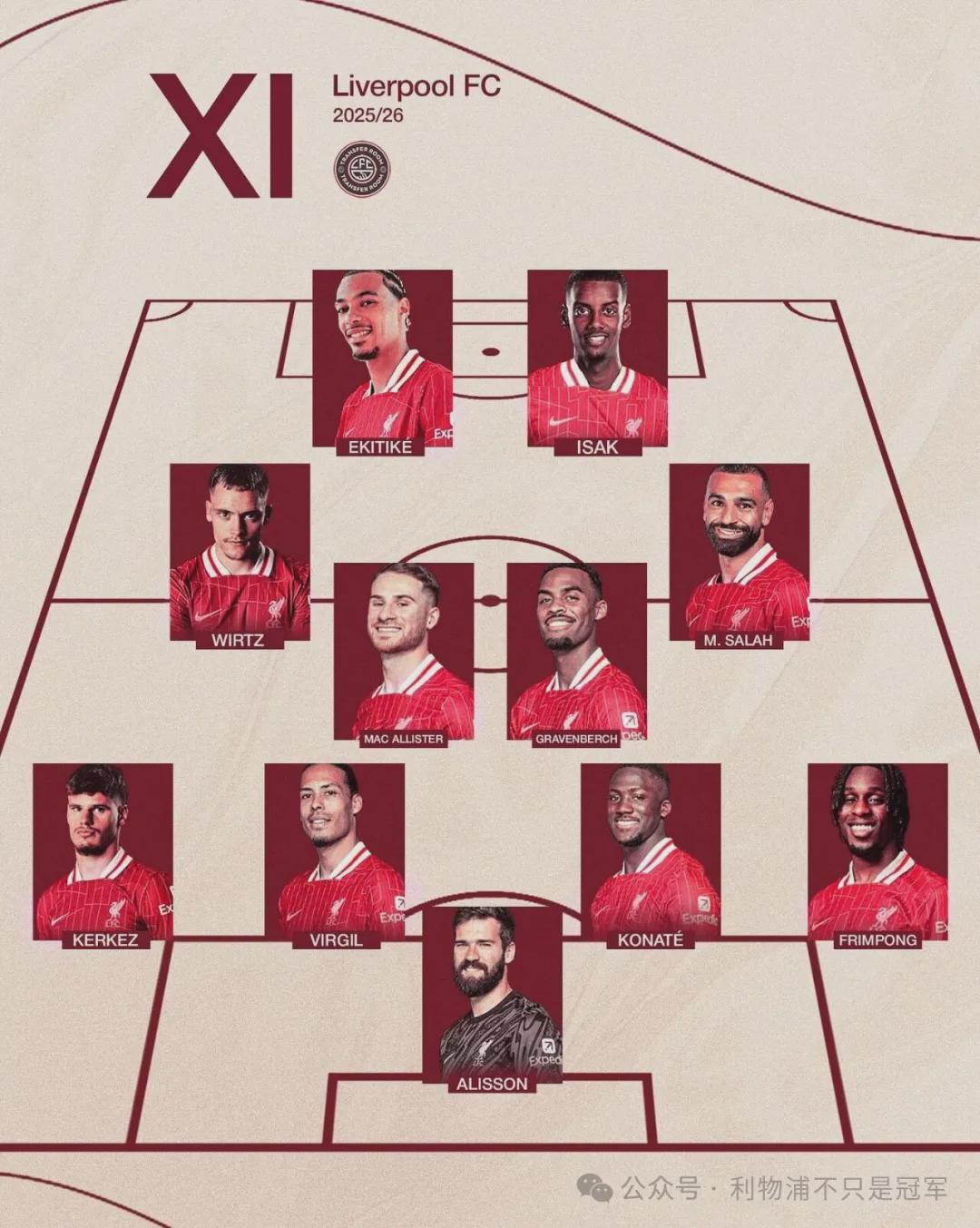 本场的另一个焦点还是伊萨克能否上演利物浦首秀?如果他能出场(个人认为更有可能是后备 出场),斯洛特将如何安排阵形 ?我们是否有机会看到利物浦前场的四大攻击手合体WISE(W-维尔茨、I-伊萨克、S-萨拉赫、E-埃基蒂克)组合?