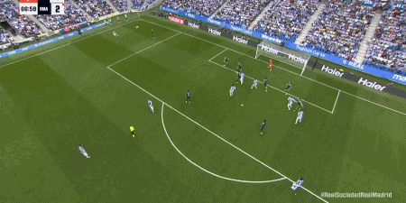 第44分钟,绝对能力!姆巴佩过人回做助功 居莱尔破门,10人皇马2-0皇社