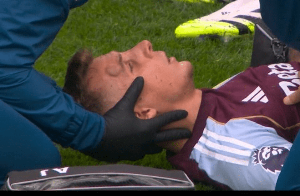 硬汉!维拉后场球员迪涅脑门被撞出一个大包,仍坚守 完成赛事