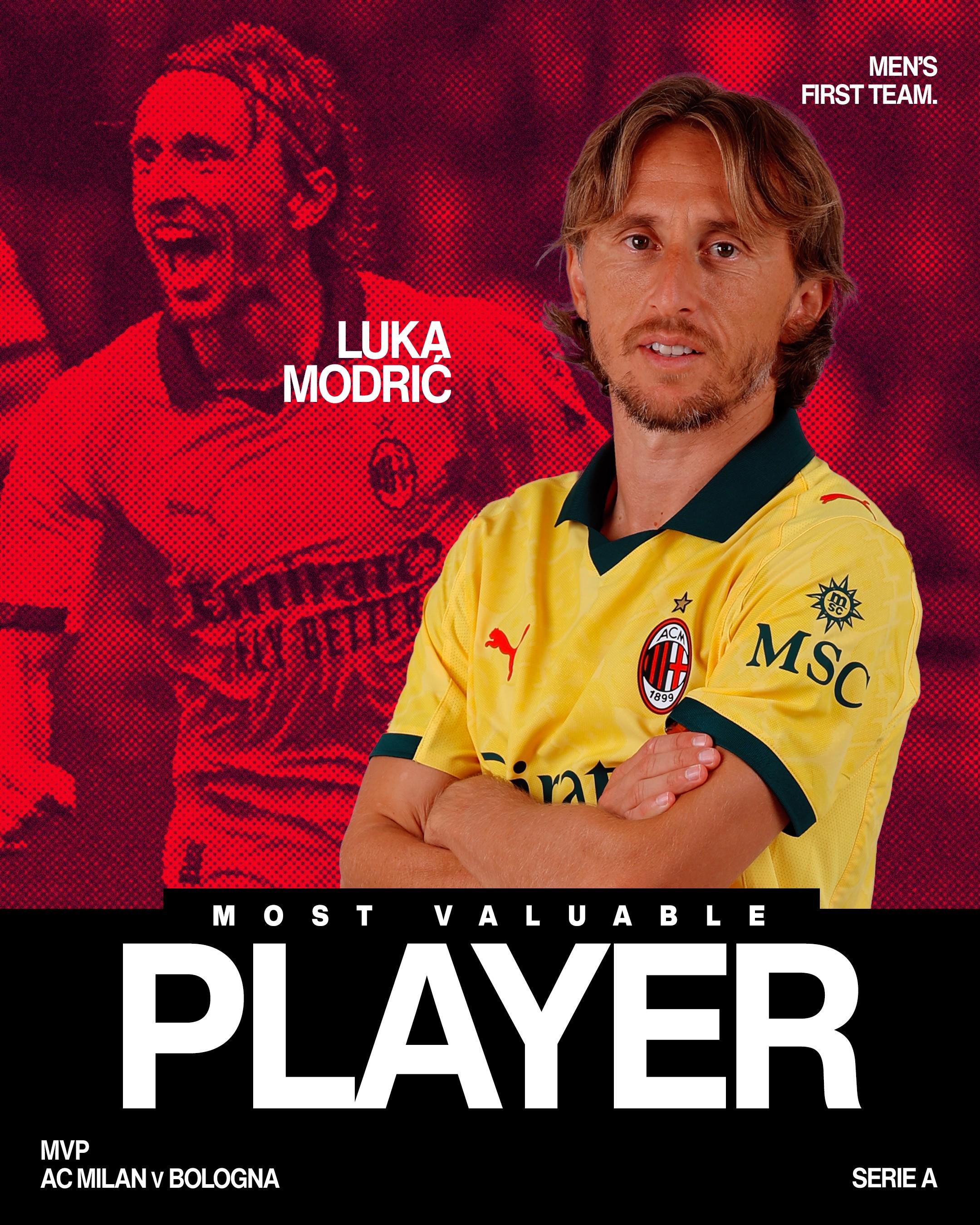 北京时间9月15日,米兰官方消息FIFA足球先生,对阵博洛尼亚打进制胜球的莫德里奇当选本场赛事 的队内最佳球员。