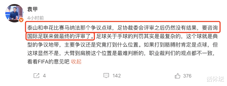 其实按照麦麦提江的能力和经验,完全可以不用等待VAR裁判 组的意见,自己直接去场边看看回放。一方面可以给客队山东泰山一个清晰的态度,另外一方面也可以给众多关注这场赛事 的球迷朋友一个明确的指示。