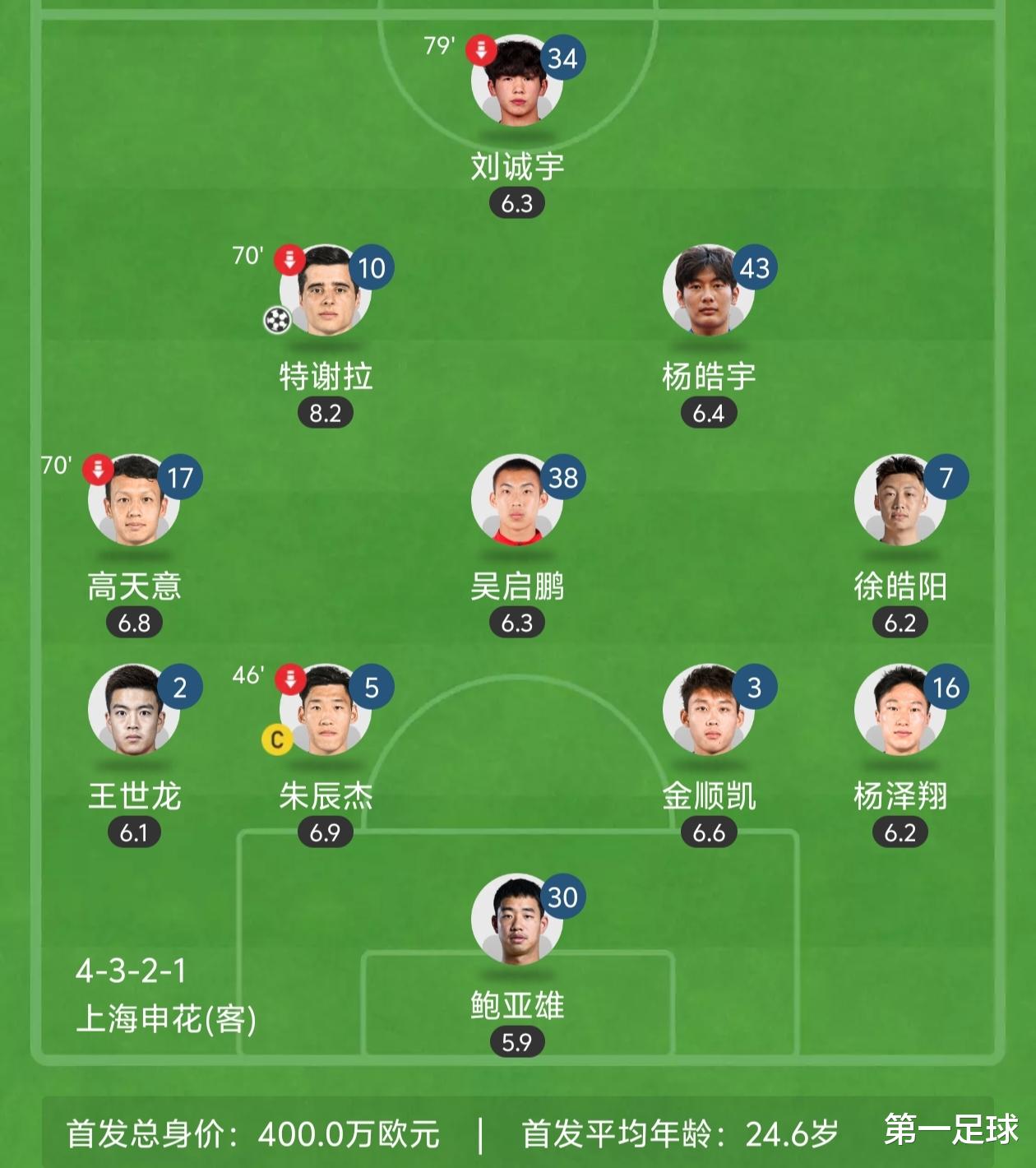然后神操作来了,上半场,上海申花一直被动挨打,但在补时阶段,上海申花的第一脚射球 便收获了得分 ,高天意助功 特谢拉打进出色 挑射。上海申花带着1比0的领跑 进入下半场,那如果是稍微有点雄心壮志的球队,既然球队领跑 了,下场赛事 还在五天后,下半场上几个主力,打个半场,是比较合理的。