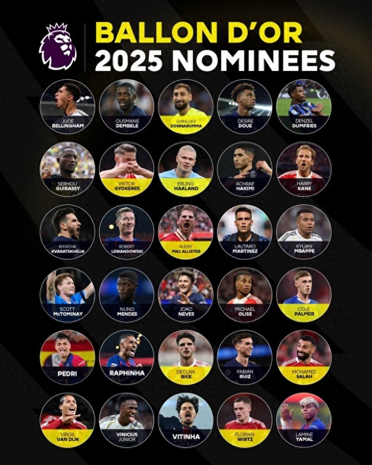 直播吧9月22日讯 英超官方晒出金球奖30人提名,2025足球今晚直播入口cctv5足球哈兰德、萨拉赫等9名英超球星入围。英超官方写道:“谁会接班罗德里?”