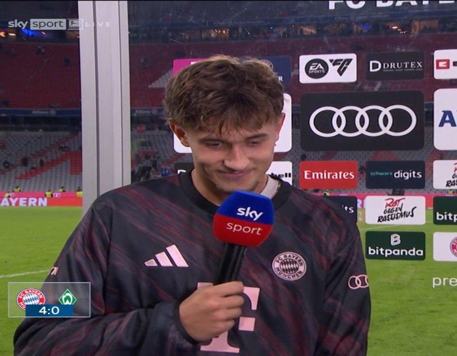 雷速体育9月27日讯 德甲第5轮赛事 实况足球解说是蔡惠强和谁,拜仁主场作战 4-0大胜不莱梅。赛后,拜仁小将比朔夫接受了采访。