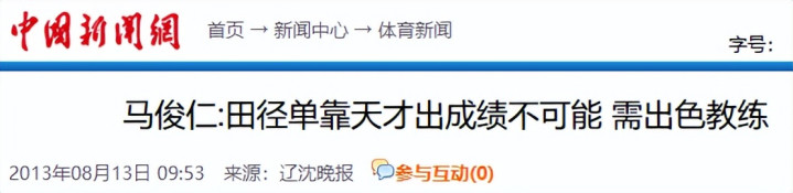 中国新闻网2013-08-13马俊仁:田径运动活动 单靠天才出成绩不可能 需出色指导教练员