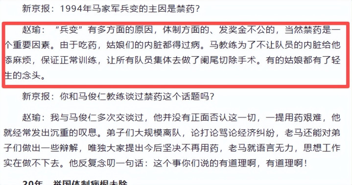1998年的时候作家赵瑜出了一篇叫做《马家军调查》的报告。