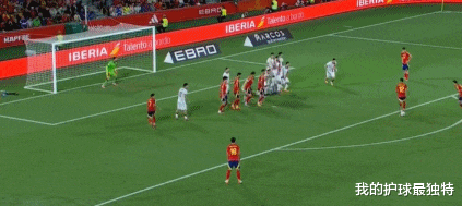 第19分钟,西班牙踢出行云流水的协作 ,苏维门迪挑传,皮诺插上传中,奥亚萨瓦尔后点顶球打偏。