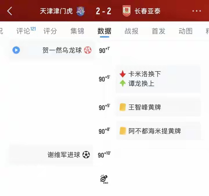 赛事 快结束时,亚泰守门员开始玩起放高球防守战术 。主裁判 眼睛雪亮,立马给他一张警告 。